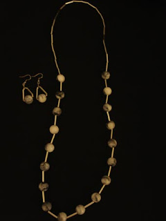 Vinte fios com canutilhos dourados no colar...